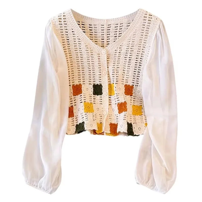 • Material: Crochet knit and chiffon fabric.